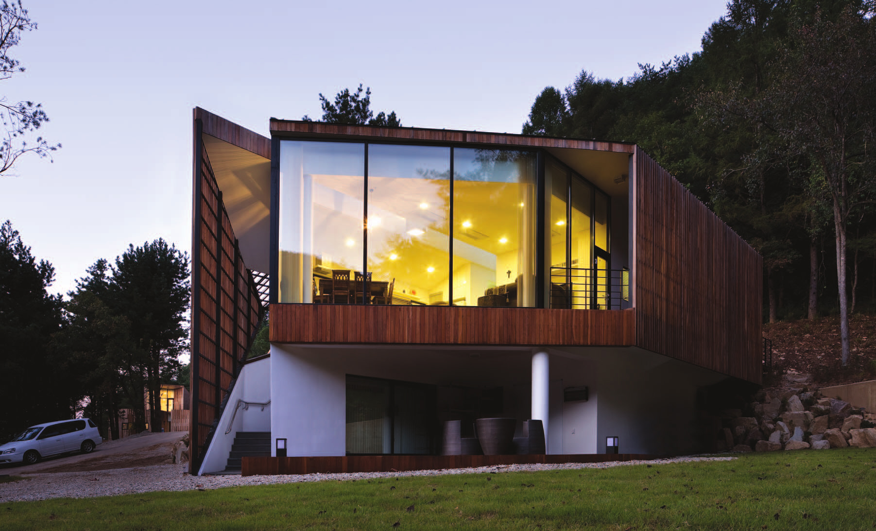 포레스트퀸텟B PROJECTS 단독주택 최고관리자 단독주택 0 11 2025.12.22 12:25 설계 건축사사무소 키아즈머스파트너스 이현호교수 사진 박영채 작가 위치강원도 양구군 용도타운하우스 외부마감재이페원목 내부마감재수입산 친환경페인트도장 구조철골+스틸하우스 대지면적220 m2 건축면적140 m2 연면적150 m2 한국건축문화대상 준공건축물부문 "우수상"수상
