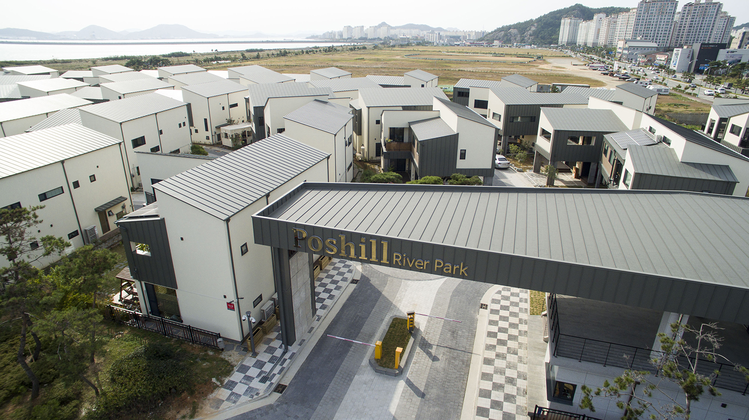 포스힐 RIVER PARK 타운하우스(50세대) PROJECTS 타운하우스 최고관리자 타운하우스 0 8 2025.12.28 15:29 설계 사람인건축사사무소 송인욱건축사 / 자리건축사사무소 이기호건축사 사진 위치목포시 옥암동 용도타운하우스 외부마감재쎄라믹사이딩(일본산) + 스터코플랙스 내부마감재실크벽지 + 한샘키친바흐 구조강구조(스틸하우스) 대지면적18,903 M2 건축면적6,390 M2 연면적11,060 M2